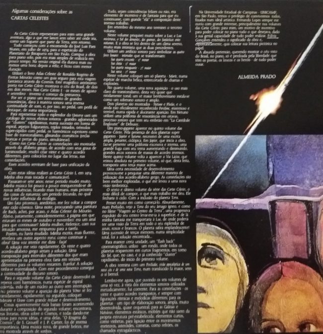 Fragmentos de um olhar sobre a composição musical de Almeida Prado. Os títulos desta leitura, referem-se aos movimentos constantes da gravação “Cartas Celestes’, criados por ele e a quem agradeço a permissão do vôo.