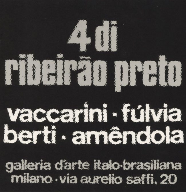 Terceira ousadia é apresentarem seus trabalhos em Milão, e a ousadia não consiste na escolha da cidade mas no fato que as peculiaridades regionais, o exótico e o pitoresco são deixados de lado para mostrar opções individuais cuja força está na individualidade, e não no exótico, nem no extravagante, nem em invenções recentes potenciadas por complicados recursos tecnólogos, trata-se de quatro mundos intactos cuja única ligação é Ribeirão Preto, o umbigo comum. Entretanto a peregrinação que os fez parar no mesmo lugar revela um inconformismo profundo que não recorre aos extremos para encontrar sua expressão. É apenas nestes amplos contornos que surgem as personalidades de Francisco Amêndola,